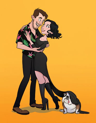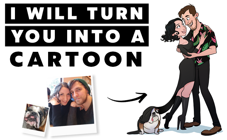 Send me some pictures of the people and/or pets you would like me to turn into cartoons and a brief description about their personality: if they have any quirks or a piece of clothing they would always use, and any activities or poses you would like them to be doing. Or, if you have any special moment in mind I could draw that too. All this information will help me get all the details in there to create an awesome cartoon.